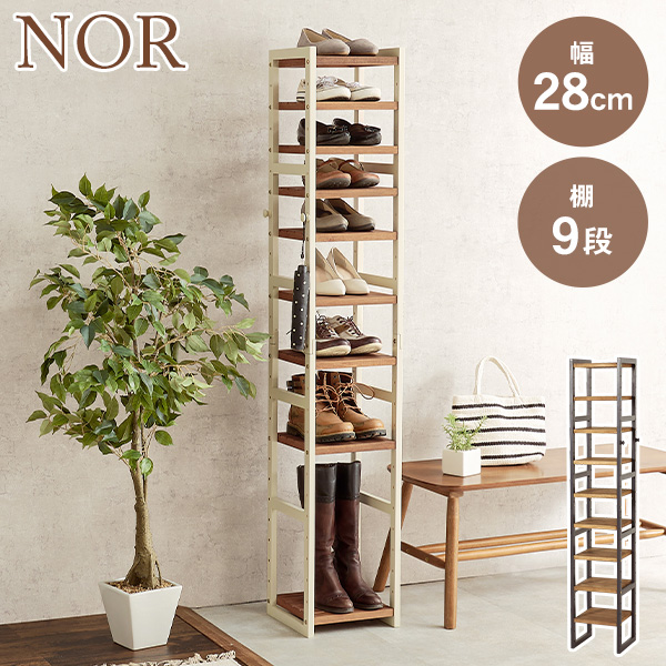 シューズラック スリム シューズボックス 下駄箱 靴箱 おしゃれ 北欧 木製 9段 薄型 収納 大容量 安い diy 狭い玄関 省スペース 玄関収納 スリッパ 幅28cm ノア