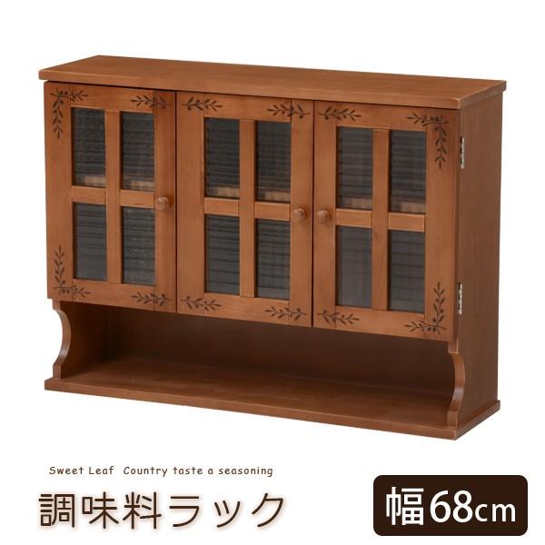 キッチンカウンター上収納 カウンター上収納ボックス カウンター上収納ラック 調味料ラック 幅68cm 木製 リーフ柄 カントリー