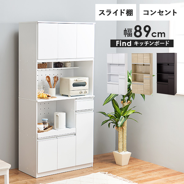 キッチンボード おしゃれ 白 キッチン 収納棚 食器棚 収納 引き出し レンジ台 スライド棚 キッチン収納 レンジボード 一人暮らし ファインド 幅89cm
