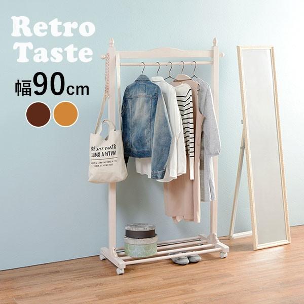 ハンガーラック スリム おしゃれ 省スペース キャスター付 コートハンガー コートラック 軽量 収納 棚 インテリア 木製 白 幅90cm