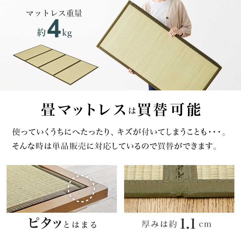 木製のフレームが温かみを感じさせ、畳はい草の自然な香りでリラックス効果も期待できます。