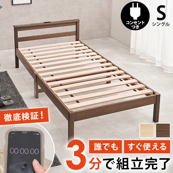ベッド ベッドフレーム シングル 収納 すのこベッド シングルベッド 宮付き コンセント付き すのこ ベット 組み立て簡単 工具不要 耐荷重120kg ネジレスライト
