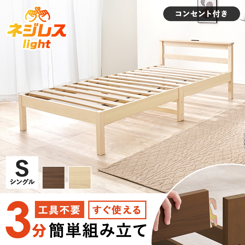ベッド ベッドフレーム マットレス付き シングル すのこベッド シングルベッド すのこ コンセント付き ポケットコイル 組み立て簡単 耐荷重120kg ネジレスライト