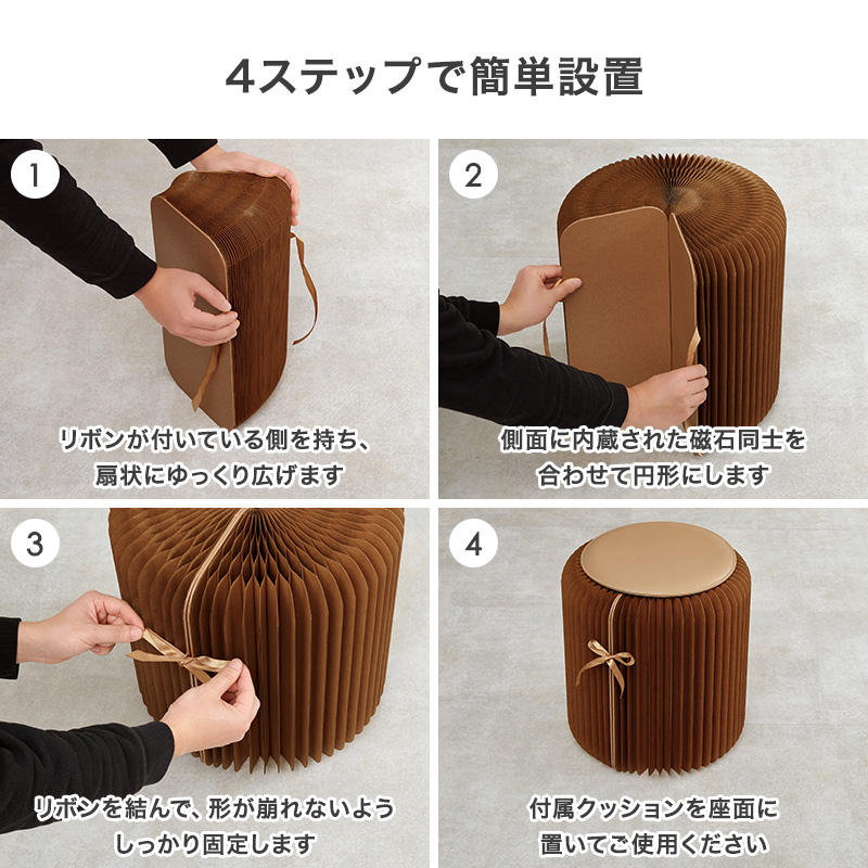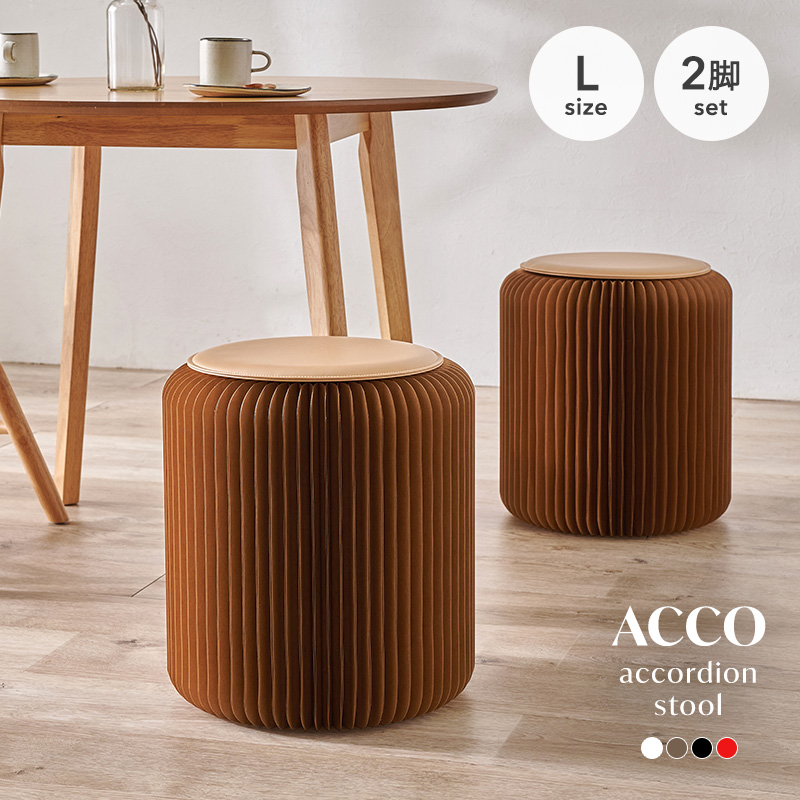 チェア おしゃれ 椅子 折りたたみ クッション アコーディオン椅子 ペーパーチェア 紙製 丸型 折りたたみ椅子 2脚 セット Lサイズ 収納 アコ