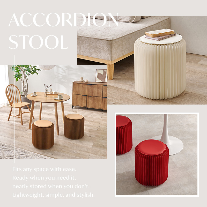 独特な蛇腹デザインが目を引くアコーディオン式スツール。