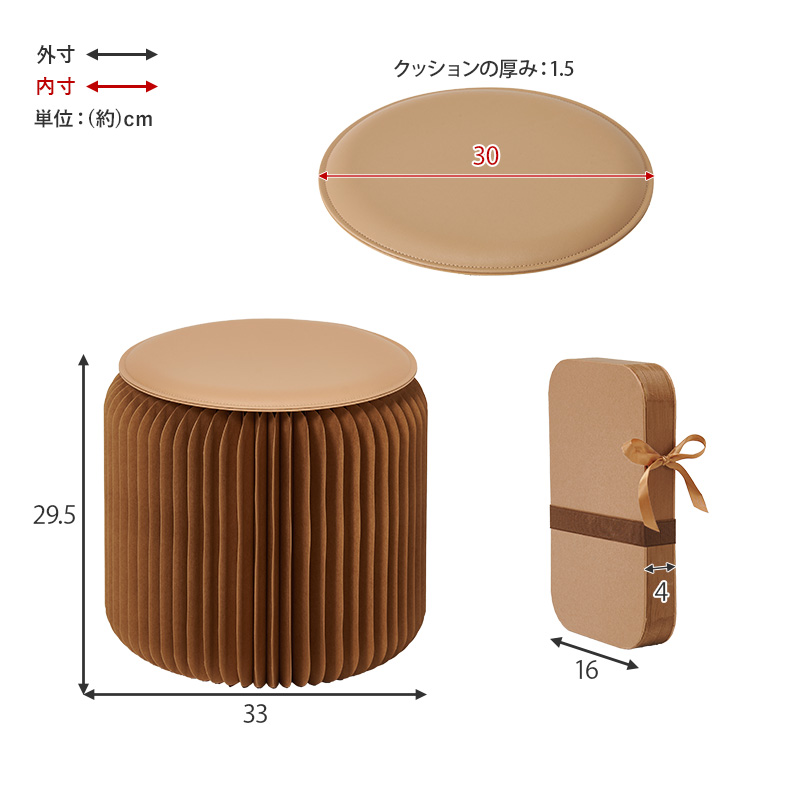 チェア おしゃれ 椅子 折りたたみ クッション アコーディオン椅子 ペーパーチェア 紙製 丸型 折りたたみ椅子 1脚 単品 Sサイズ 収納 アコ