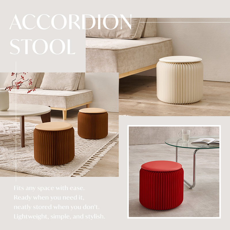 独特な蛇腹デザインが目を引くアコーディオン式スツール。