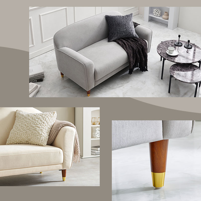上品なファブリック生地に木目とゴールドの脚部がエレガントさを演出。