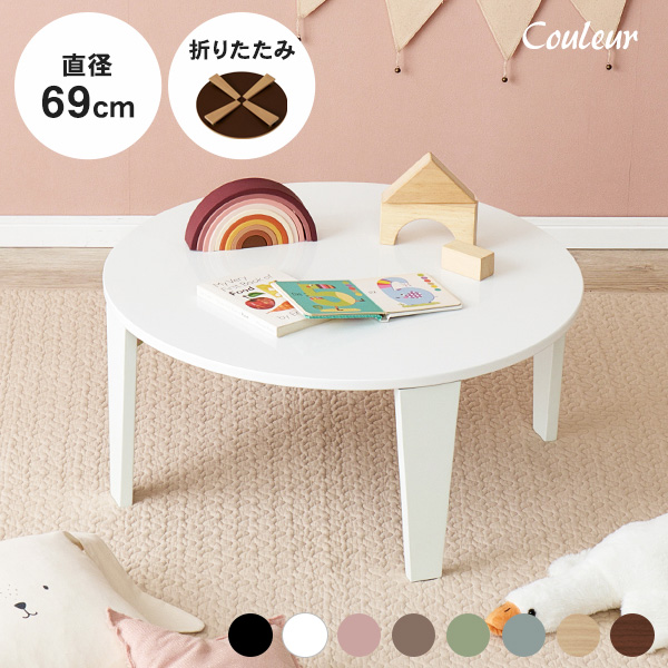 テーブル 折りたたみ 丸 ローテーブル 折りたたみテーブル おしゃれ センターテーブル 円形 丸型 白 木製 サイドテーブル 完成品 机 幅69cm クルール