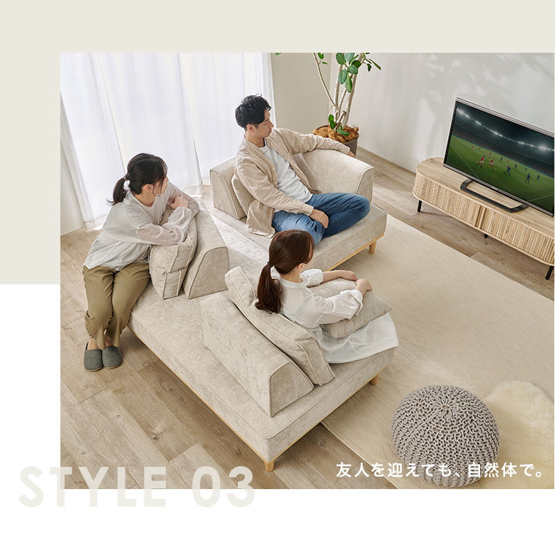 それぞれが好きな体勢で自由に過ごせるのもアイランドソファならでは。