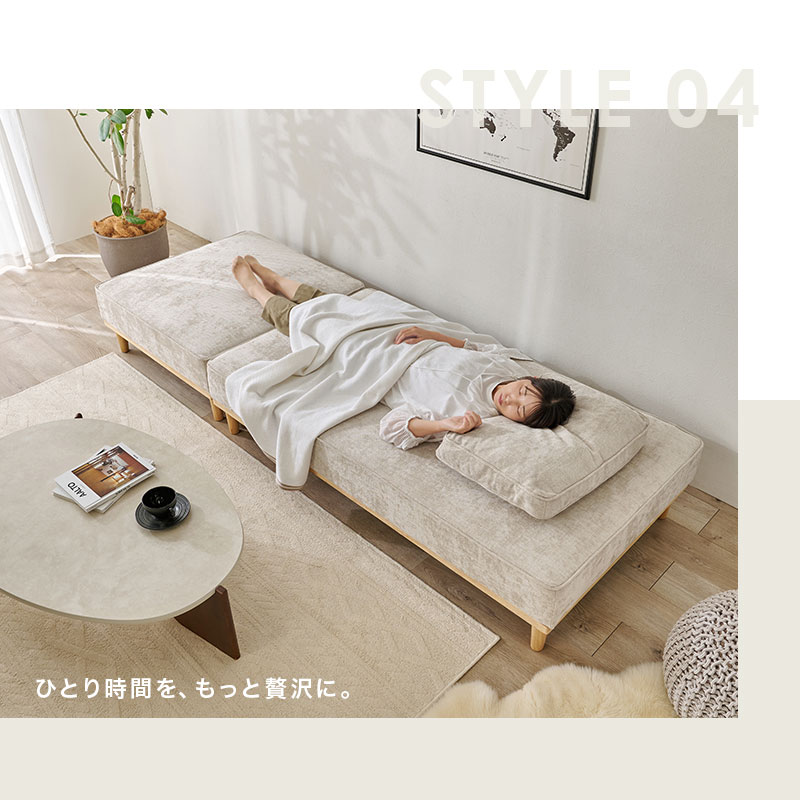 可動式デザインで、座る・寝転ぶ・もたれるなど、