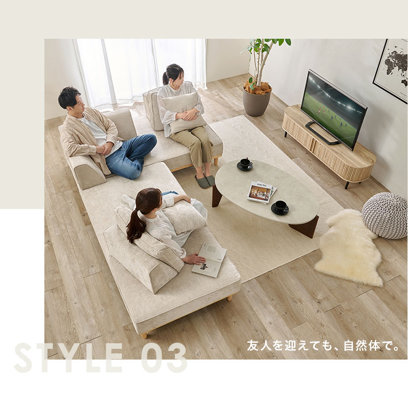 リビングの中心に置くだけで心地よいくつろぎ空間が生まれます。