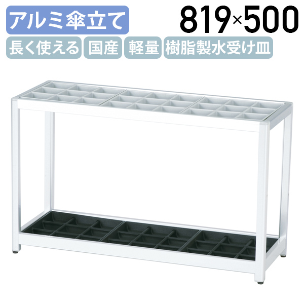 ●アルミ押出材で作られた、国産傘立ての27マス型です。 ●オーソドックスなシルバーカラーのフレームタイプとなっております。 ●水受け皿は樹脂製で取り外しも可能なので、水洗いができ、お手入れも簡単です。 ●アルミ製で、スチール製と比べ軽く持ち運びもしやすいのはもちろんのこと、腐食に強く高級感もあり、長くお使いいただけます。 ●シンプルで場所を選ばないデザインは、オフィスや商業施設でのエントランス、自治体や学校関連でも活躍することでしょう。 ●完成品となっておりますので、開梱後すぐにお使いいただけるのも見逃せないポイントです。 |