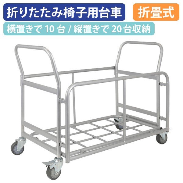 ●当店の「折りたたみ椅子ベーシック」等のパイプ椅子を収納して運搬できる、専用台車です。 ●丈夫なスチールフレーム台車に、横置きで10台/縦置きで20台の「折りたたみ椅子ベーシック」を収納することが可能です(収納可能台数はパイプ椅子により異なります)。 ●もちろん、使わない時には、折りた畳んで収納しておけますので、複数台の折畳式パイプ椅子を頻繁に運搬する必要のある多目的ホールや共有施設等にあると便利な一台です。 ●なお、有効収納サイズに合えば、他メーカーの折りたたみ椅子でも台車に収納することができます。 |