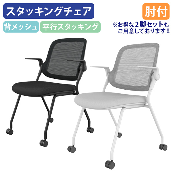 スタッキング・ネスティング収納に対応し、ロータリーアームレストやロッキング機能、メッシュ背など快適性と省スペース性を両立。