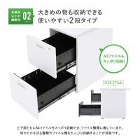 | 収納スペースの拡張に 当店のホワイトデスクに高さや奥行きがピッタリと合う2段脇机は、収納スペースの拡張用にオススメです。 |