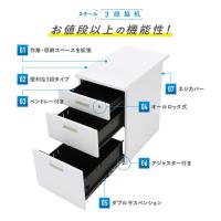 ●三段の引き出しの付いた、ホワイト脇机。 ●高さが700mmと、標準的なデスクやテーブルと同じ高さなっており、横にぴったりつけることで、ワークスペースを拡張することができるサイドキャビネットとなっております。 ●一番上の引き出しには、小物入れとしてちょっとした文房具等を収納できます。 ●一台で作業スペースと収納スペースを同時に拡張でき、急なオフィスの拡張や、増えすぎた書類の整理にオススメの3段ホワイト脇机です。 ●脇机は、三段タイプと二段タイプを取り揃えておりますので、必要なオフィスシーンに合わせてご選択ください。 |