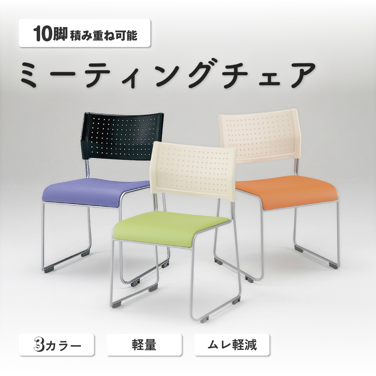 ●全3色のカラフルなパステルカラーを採用した、スタッキングチェアです。 ●お部屋をパッと爽やかにするような、デザイン性に優れたハイセンスな配色が、女性のお客様にも好評です。 ●背は樹脂でできており長時間座っていてもムレが少なく、快適にご使用いただけます。 ●座面には耐久性に優れ、汚れを拭き取りやすいPVCレザーを採用しております。 ●また、別売りのオプションパーツとして、スタッキングチェアPT専用台車もご用意しております。 ●専用台車は、未使用時の収納に便利なスタッキングチェアに、機動力を追加できる優れものです。 |