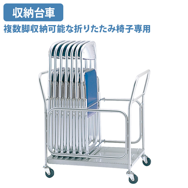 ●倒れ防止機能付きで、複数脚収納可能な折りたたみ椅子専用台車。 ●キャスター付きのため、椅子を収納したまま移動させることが可能。 |