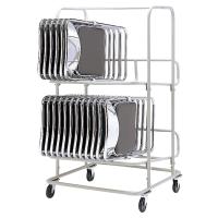 ●2段に分けて、複数脚収納可能な折りたたみ椅子専用台車。 ●キャスター付きのため、椅子を収納したまま移動させることが可能。 |