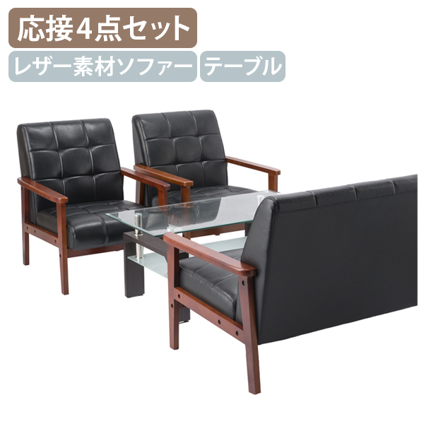 レザー素材を使用した1Pソファー2台、2Pソファー1台とガラスセンターテーブル1台の応接4点セットです。