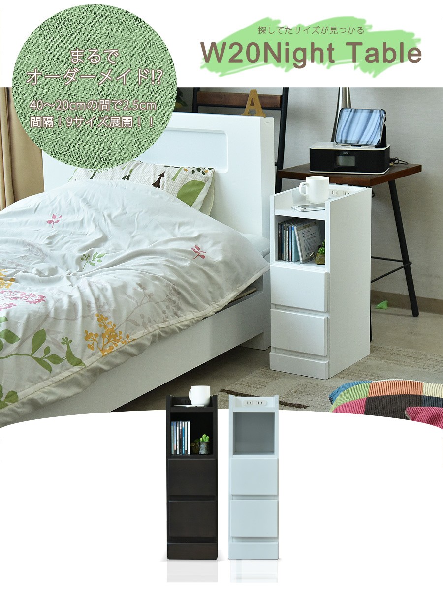 ナイトテーブル 消灯台 幅20cm 木製 完成品 日本製 大川家具 収納スペース付き