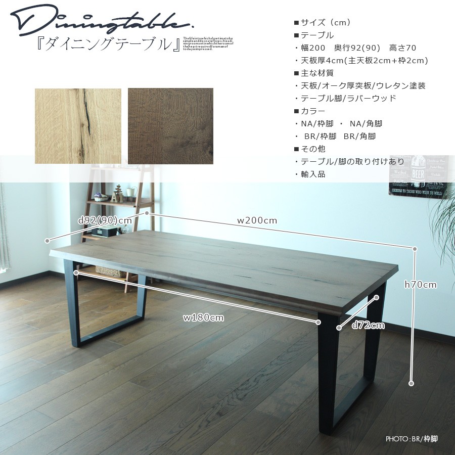 幅200 200cm ダイニングテーブル 6人用 食卓 テーブル ブラウン ナチュラル シンプル カフェ ヴィンテージ モダン 北欧