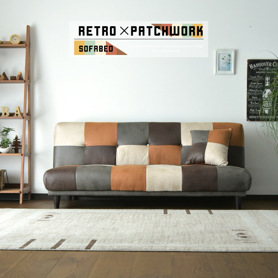 ソファベッド シングル 3人掛け 三人掛け レトロ 脚付き パッチワーク風 PVC 幅180cm モダン ソファーベッド 合皮 3段階リクライニング 爆買