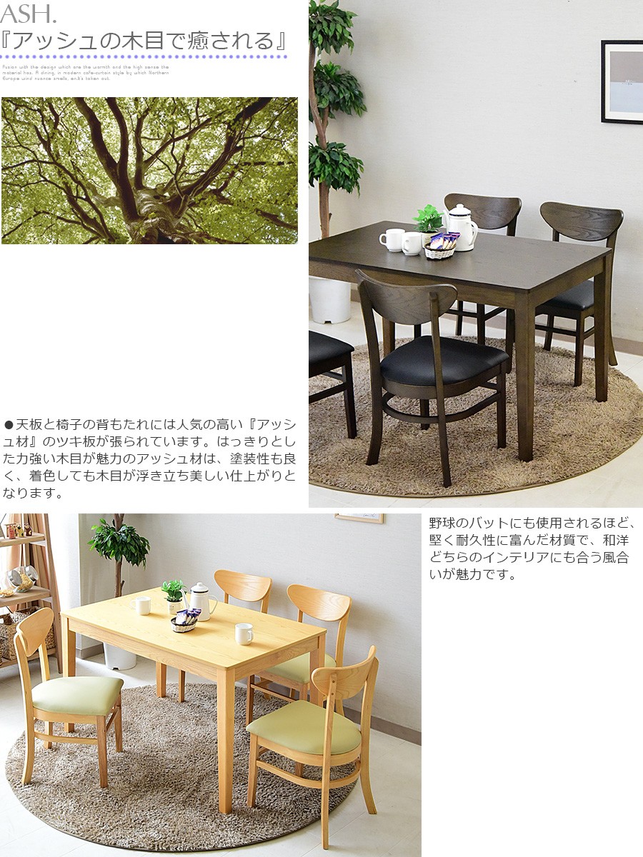 ダイニングテーブルセット 4人掛け 120cm 4人用 ナチュラル ブラウン 食卓 5点セット おしゃれ アッシュ 突板 木目 ダイニングチェア 4脚 カフェ風