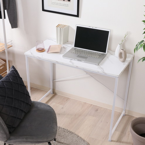 送料無料 大理石柄デスク 幅95cm パソコンデスク ワークデスク コンパクト シンプル フリーデスク オフィスデスク テーブル 勉強机 作業台 おしゃれ 収納家具