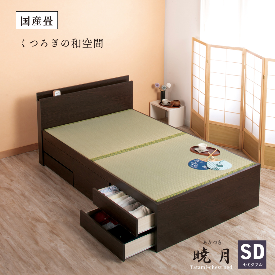 畳ベッド 収納付 セミダブルベッドフレーム ベッド チェストベッド カウンター コンセント付き 国産畳 へり付畳 日本製 暁月 あかつき