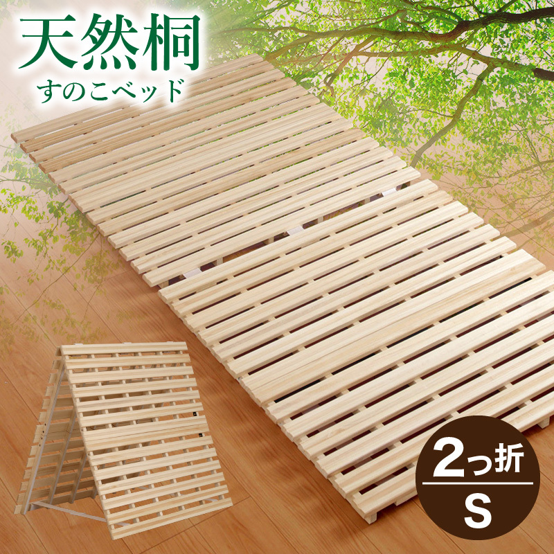 2つ折り すのこベッド シングル ベッドフレーム フレーム べっど bed 天然木 桐 通気性 防湿 布団用 ふとん用 スノコ 湿気対策