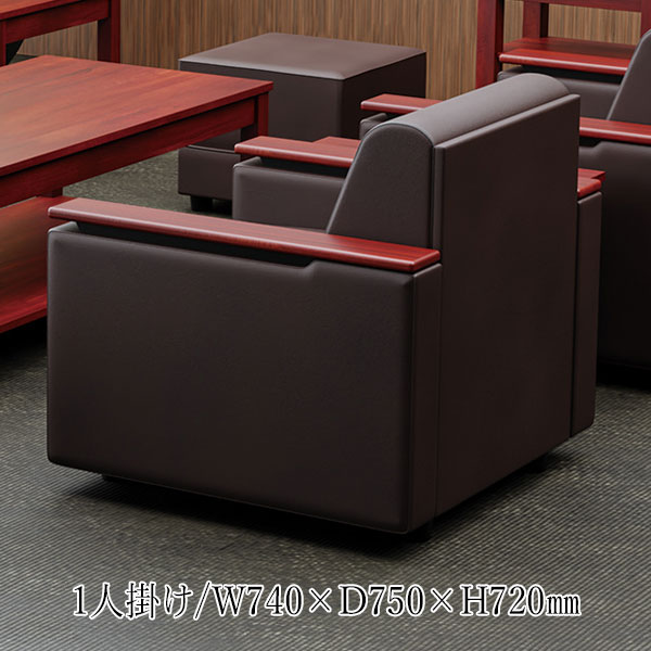 応接ソファ 1人掛け 一人 1P アームチェア ロビーチェア 待合椅子 ビニールレザー張り ブラウン 茶 ブラック 黒 シンプル AC-0408
