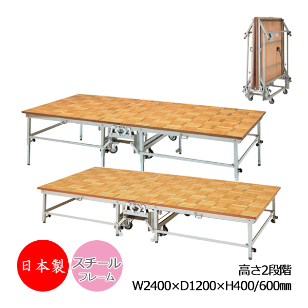 ポータブルステージ スチール製 天板木貼り 標準サイズ 高さ2段階 40cm 60cm 折りたたみ式 キャスター付き ステージ台 舞台 【送料別】 AL-0058