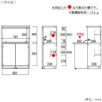 収納に便利な可動棚2枚付。30mmピッチで変更可能です。