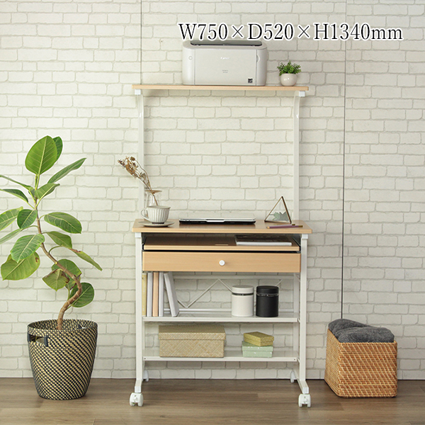 デスク パソコンデスク 学習デスク 学習机 作業机 ブックシェルフ 引出 収納付き 幅75cm スチール 木目 ナチュラル ブラウン シンプル IW-0026