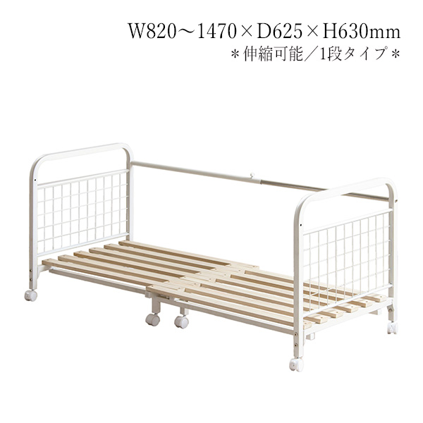 伸縮布団収納ラック 1段 寝具 布団収納 布団ラック 収納ワゴン 押入れ収納 押入れ 幅82〜147cm キャスター付き スチール ホワイト シンプル IW-0060