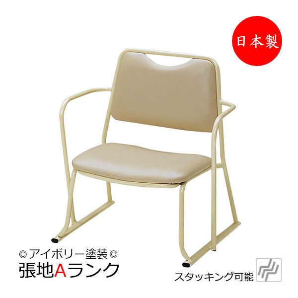 寺椅子 座イス 御参りイス ローチェア スタッキングチェア 畳ずり付き 肘付 スチール脚 アイボリー塗装 張地Aランク MT-0063