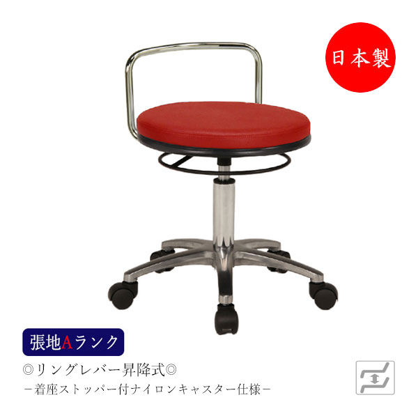 スツール 作業用椅子 リングレバー式 上下昇降 背付 ミドルタイプ アルミ脚 着座ストッパー付キャスター仕様 MT-1318