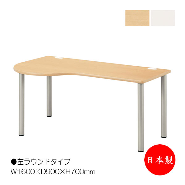 ナーステーブル デスク 作業机 ワークテーブル 会議テーブル 幅160cm 奥行90cm 左ラウンド メラミン化粧板 木目 茶 白 NS-1017