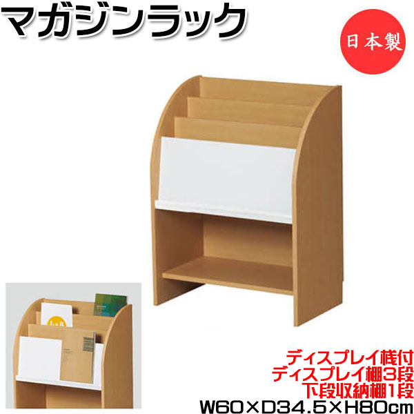 マガジンラック 3段 ディスプレイ桟 収納棚付 マガジンスタンド パンフレット 本棚 雑誌置き 幅60cm 約奥行35cm 高さ80cm UT-1365