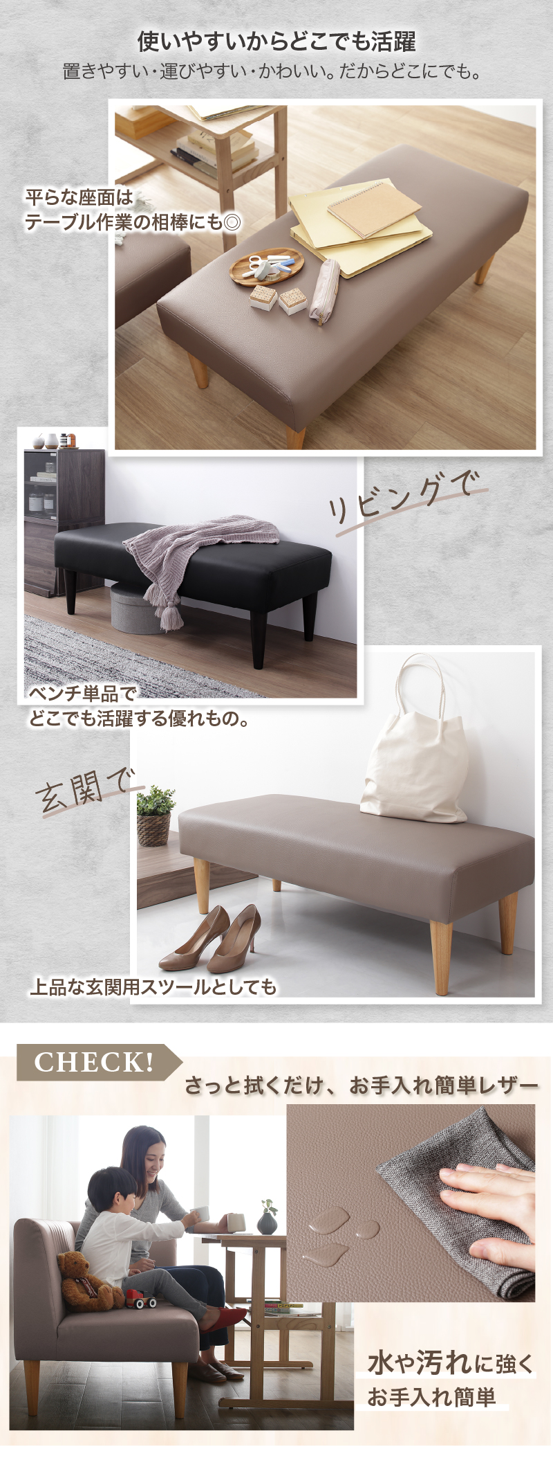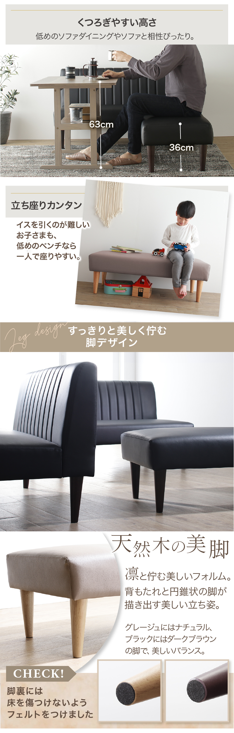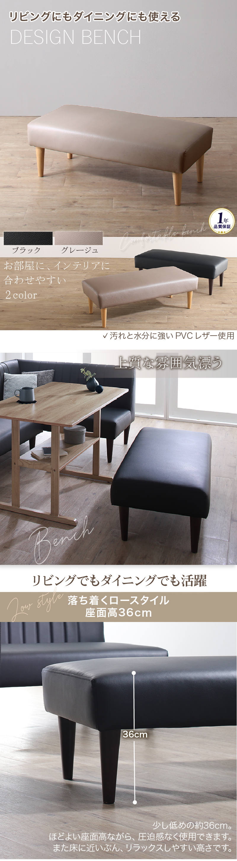 ダイニングベンチ ベンチ ベンチチェア 長椅子 食卓 玄関 リビング 2人 2人用 2人掛け レザー 合皮 ブラック グレージュ ソファダイニング おしゃれ ベンチ単品