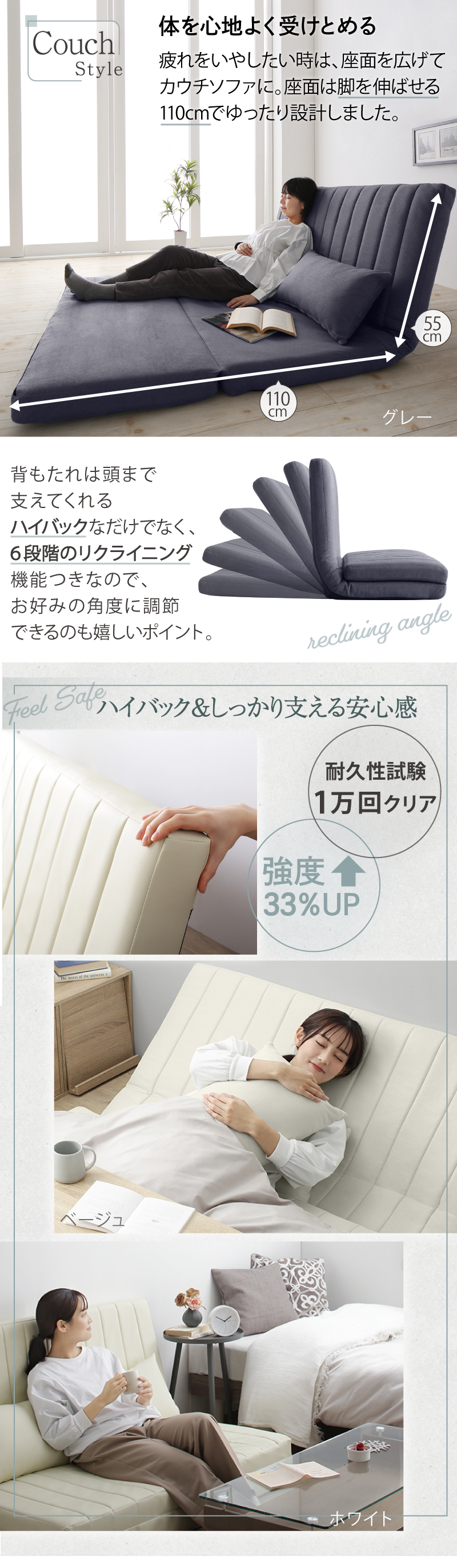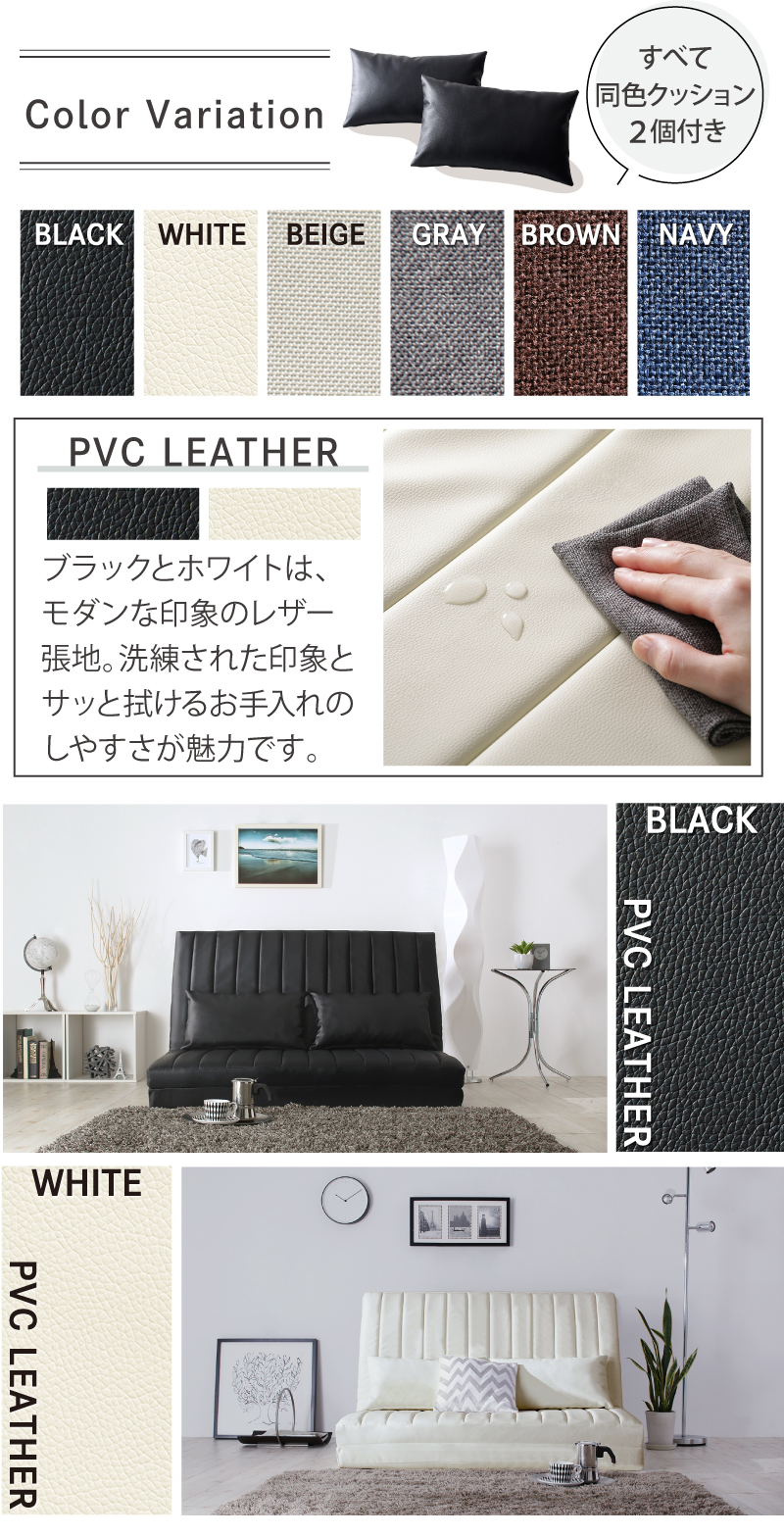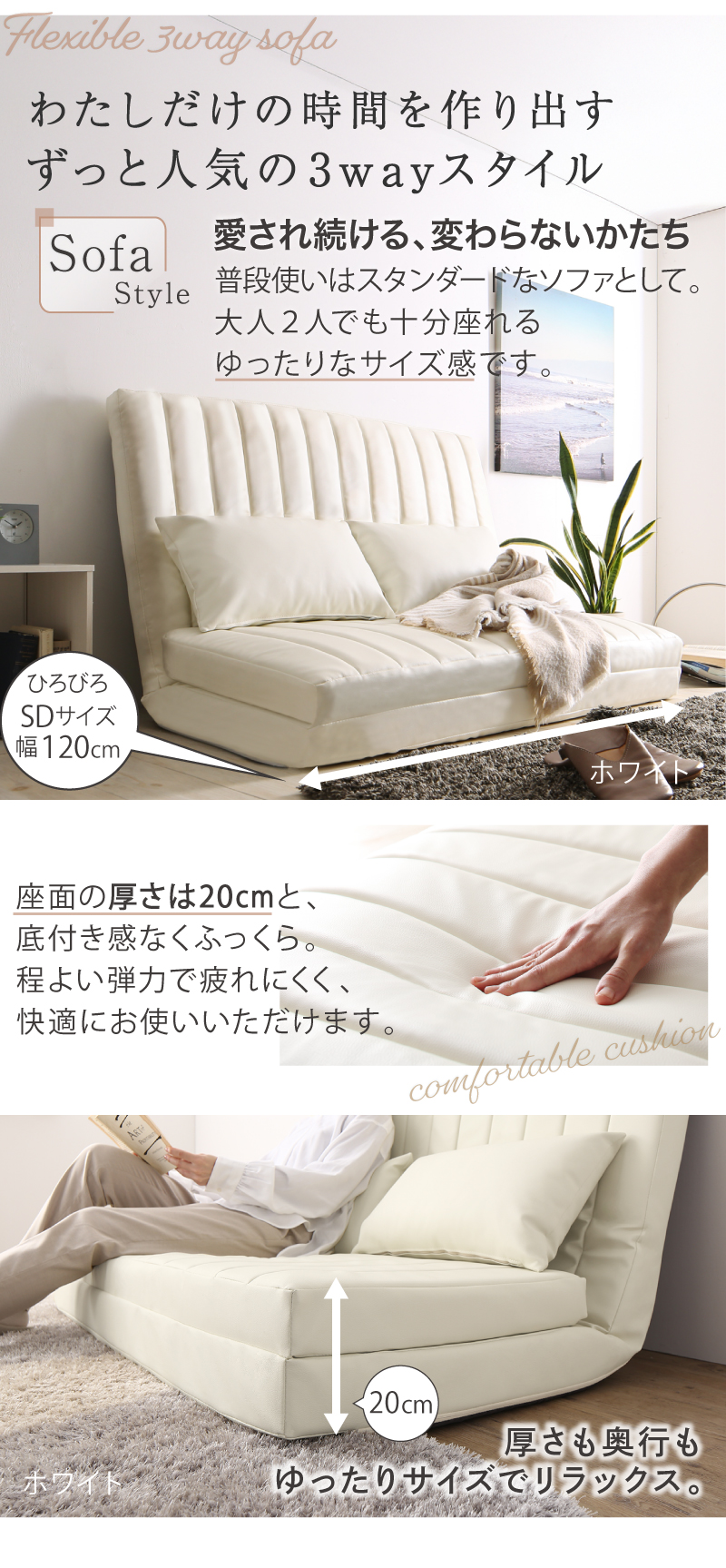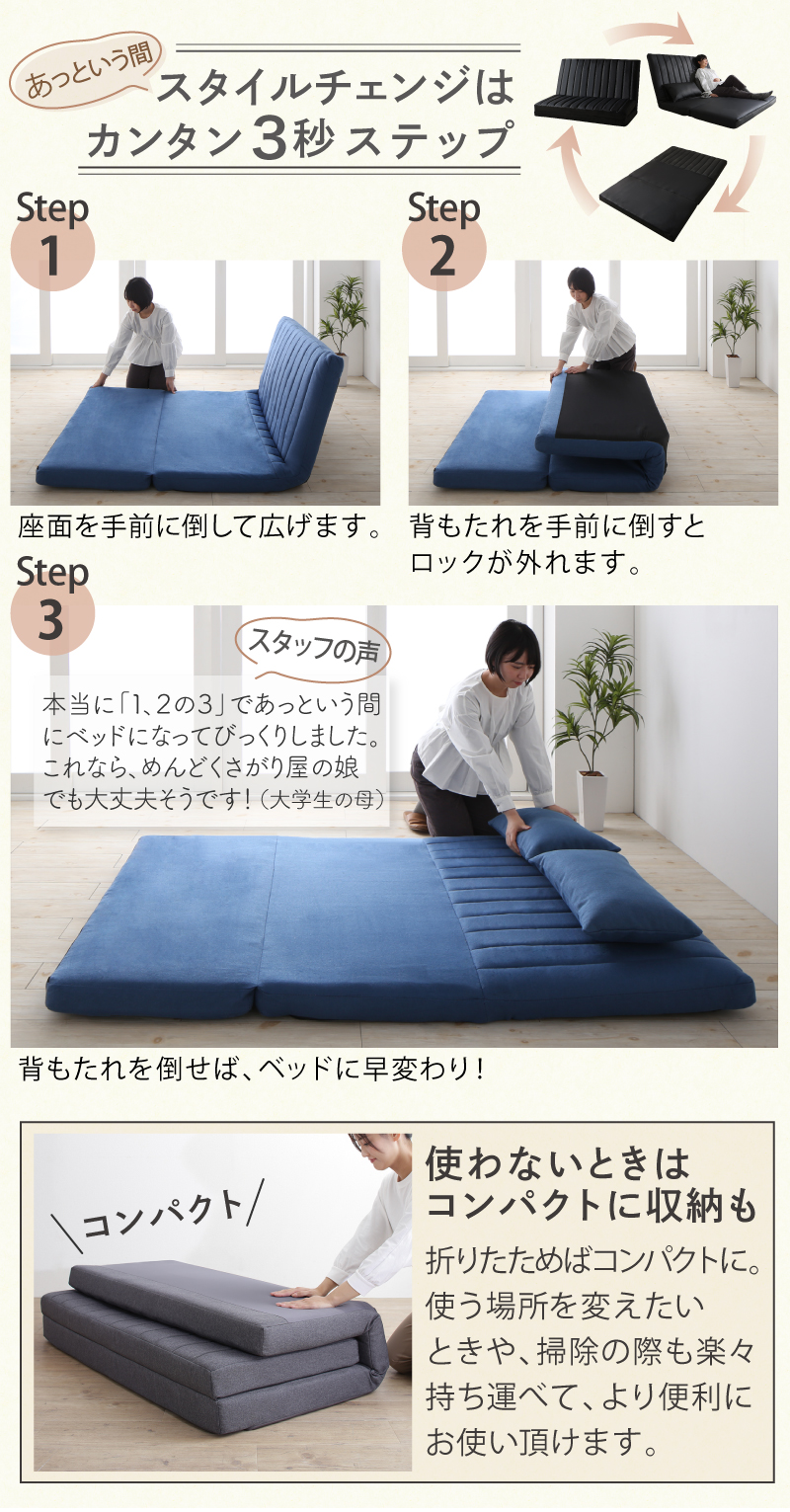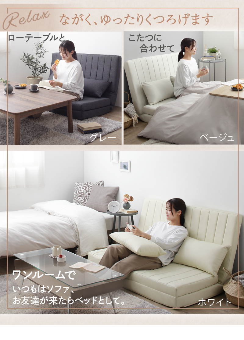 ソファーベッド 2人掛け コンパクト ソファ ソファー 120cm ハイバック リクライニング ローソファ フロアソファ 合皮 ファブリック 3way ソファベッド