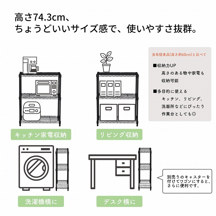 いろいろな収納に便利な使いやすい高さ約74.3cm