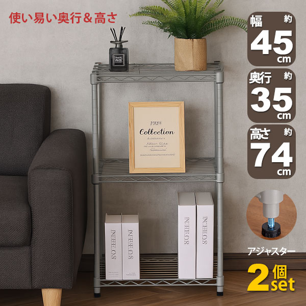 商品名:2個セット スチールラック 3段 スリム 幅45cm 奥行35cm 高さ74.3cm グレー (約45×35x75cm) アジャスター付き おしゃれ くすみカラー マットシルバー メタル製ラック シェルフ 省スペース キッチンラック 隙間収納 頑丈 スリムラック ベッド横 ソファ横 コンパクト AAS-4302 小さい オープンラック 高さを変えられる棚 丈夫 浅型 家具 インテリア 収納家具 棚 ラック 小型 三段ラック 低い 収納棚 低め スチールラック ロータイプ ローラック 高さ調整 マルチラック フリーラック 多目的ラック 整理棚 オープン棚 オープンシェルフ キッチン収納棚 レンジラック 家電収納 調理家電 キッチンストッカー 玄関ラック 玄関収納 ランドリーラック