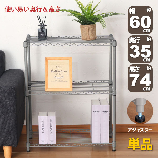 商品名:スチールラック 3段 スリム 幅60cm 奥行25cm 高さ74.3cm ダークグレー (約60×25x75cm) アジャスター付き おしゃれ くすみカラー メタル製ラック シェルフ 省スペース キッチンラック 隙間収納 頑丈 スリムラック ベッドサイドラック ソファ横 コンパクト 単品 AAS-6201 小さい オープンラック 高さを変えられる棚 丈夫 浅型 家具 インテリア 収納家具 棚 ラック 小型 三段ラック 低い 収納棚 低め スチールラック ロータイプ ローラック 高さ調整 マルチラック フリーラック 多目的ラック 整理棚 オープン棚 オープンシェルフ キッチン収納棚 レンジラック 家電収納 調理家電 キッチンストッカー 玄関ラック 玄関収納 ランドリーラック 本棚 ゲーム機 ディスプレイラック 飾り棚 コレクションラック 小物収納