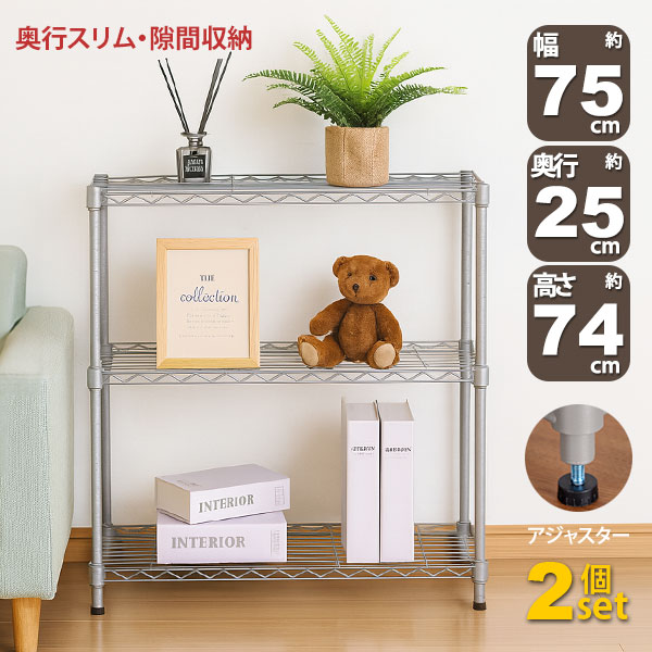 商品名:スチールラック 3段 スリム 幅75cm 奥行25cm 高さ74.3cm グレー (約75×25x75cm) アジャスター付き おしゃれ くすみカラー マットシルバー メタル製ラック シェルフ 省スペース キッチンラック 隙間収納 頑丈 スリムラック ベッド横 ソファ横 コンパクト 単品 AAS-7202 小さい オープンラック 高さを変えられる棚 丈夫 浅型 家具 インテリア 収納家具 棚 ラック 小型 三段ラック 低い 収納棚 低め スチールラック ロータイプ ローラック 高さ調整 マルチラック フリーラック 多目的ラック 整理棚 オープン棚 オープンシェルフ キッチン収納棚 レンジラック 家電収納 調理家電 キッチンストッカー 玄関ラック 玄関収納 ランドリーラック 本棚 ゲーム機 ディスプレイラック 飾り棚