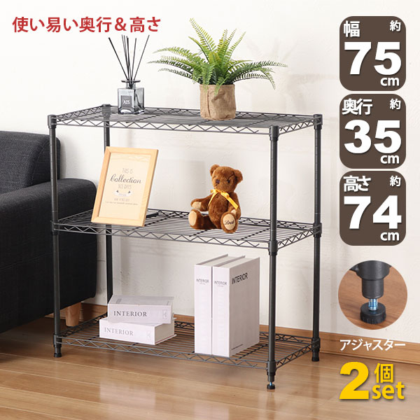 幅約75cm 奥行約35cm 高さ約74.3cm 耐荷重約40kg(1枚あたり) ガタつき調節可能アジャスター付
