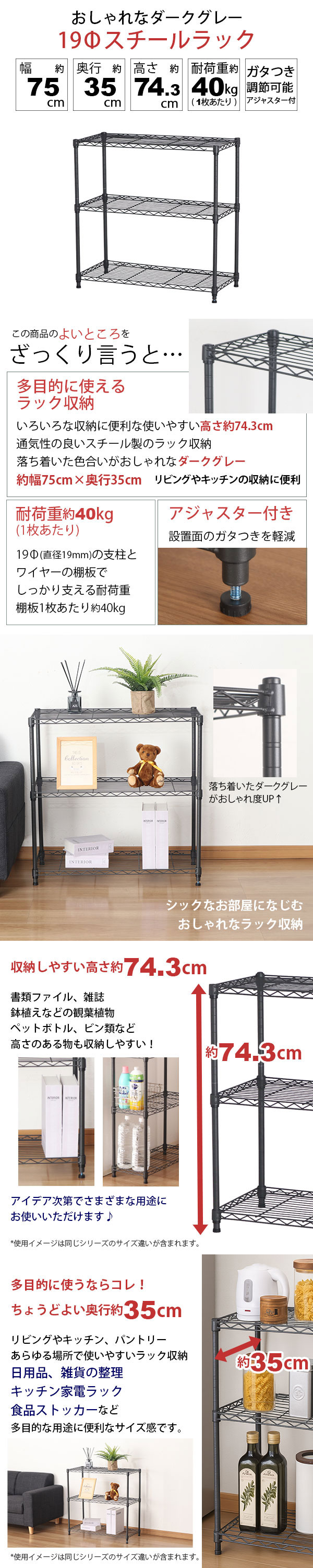 使い易い奥行&高さ おしゃれなダークグレー 19Φスチールラック の説明
