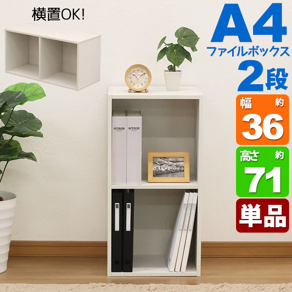 商品名:A4カラーボックス2段 A4ファイル対応 収納棚 幅36cm 奥行29.2cm 高さ70.6cm(約 奥行30cm 高さ70cm) 縦置き 横置き サイドデスク 教科書 学用品 子ども部屋 シンプル 木目柄 おしゃれ かわいい コンパクト 洗面所 寝室 キッチン 漫画 リビング 本棚 コミック MBA-100 単品 ホワイト 白 多目的棚